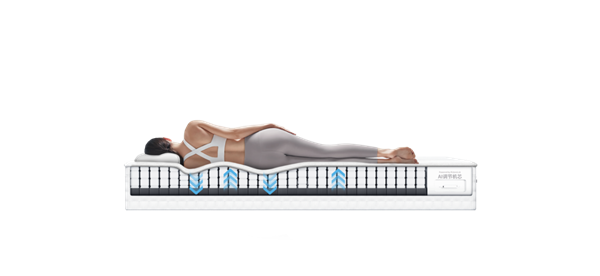 这种调节并非简单的软硬切换,而是对人体脊椎曲度的自然适配:平躺时,床垫会自动感知臀部压力,适度下沉以避免臀部受压,同时精准承托悬空的腰部,填补腰椎自然曲度的空隙,释放腰部压力,摆顺颈椎生理曲线,保障呼吸顺畅;侧睡时,系统会实时识别肩颈与胯部的受压点,自动下沉包裹,释放肩颈与胯部的压力,同时强化腰肋部支撑,确保脊椎保持自然状态。